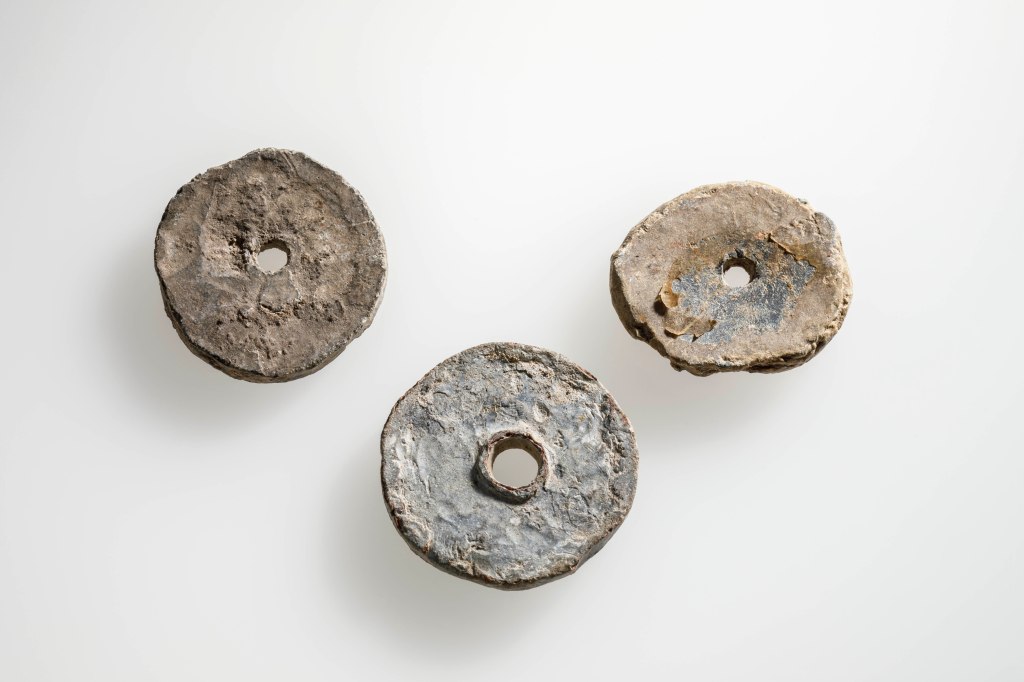 Ein grün glasiertes, glockenförmiges Tongefäß (https://ausgegraben.at/2024/02/07/das-museumsdepot-als-fundgrube/), schon 1907 im Gräberfeld von Brigantium gefunden und dem Ausgräber ein Rätsel, entpuppte sich als mittelalterliche Destillierglocke. Ob die Apparatur über 1000 Jahre nach dem Belegungsende des Gräberfeldes durch Zufall oder mit Absicht mit der Spitze nach unten aufrechtstehend, zwischen dem Palais Thurn und Taxis und dem Bundesgymnasium Gallusstraße deponiert worden ist, wäre eine noch zu erzählende Geschichte. Beispielsweise ist einer der drei in Lauterach gefundenen Spitzwürfelbarren besonders geformt. Ein Ende ist ungewöhnlich lang ausgezogen. Für den Transport und die Lagerung des Barrens ist dies eher hinderlich denn nützlich. Vielleicht wurde er also nach ersten Schmiedeversuchen aus uns unbekannten Gründen „deponiert“.