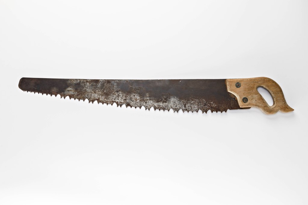 Im Zuge der wissenschaftlichen Bearbeitung der 115 ausgestellten Objekte wurden neben den „technischen“ Informationen (Datierung, Fundort, Herkunft, Material etc.) – nicht immer erwartet – auch viele kleine, manchmal kuriose, manchmal überraschende „Hintergrundgeschichten“ recherchiert. Es stellte sich beispielsweise heraus, dass der ausgestellte Fuchsschwanz (Abb. 10) aus einer beschädigten Waldsäge recycelt worden ist. Der Holzgriff wurde mit zwei Schrauben am Sägeblatt befestigt. Als Beilagscheiben verwendete man zwei durchbohrte österreichisch-ungarische Kleinmünzen (2 Filler geprägt 1908 und 2 Heller geprägt 1904). Abgesehen von der sehr menschlichen Praxis Vorhandenes zweckentfremdet wiederzuverwenden, sind beide Bronzemünzen für die zeitliche Einordnung der „Reparatur“ besonders wertvoll (Terminus post quem: nach 1908).