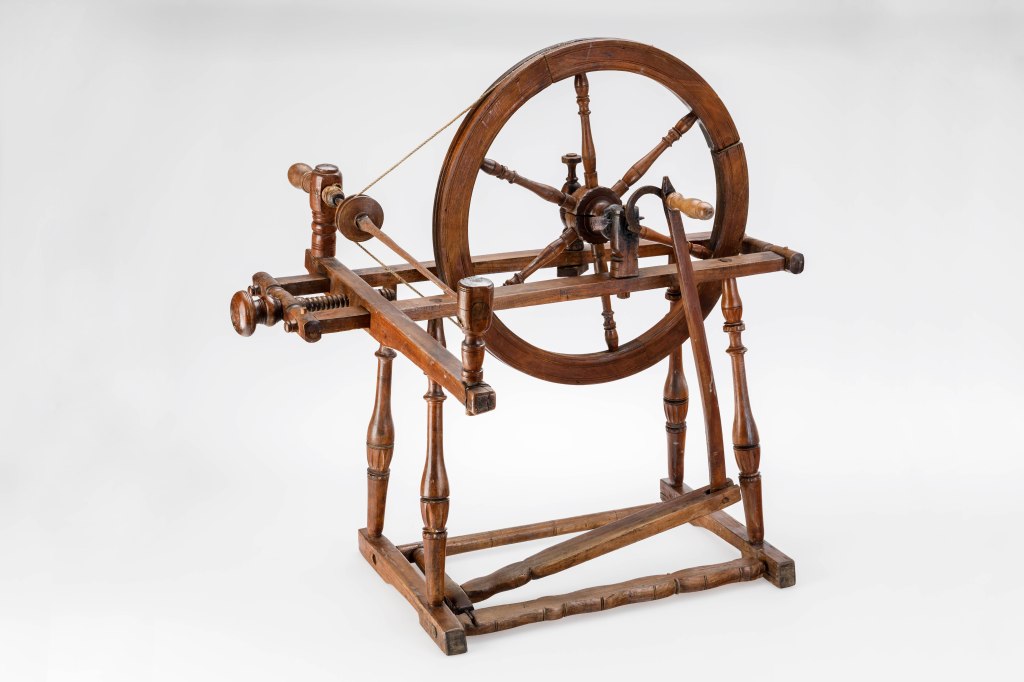 Die mit teilweise billigst produzierten Kleidungsstücken übervollen Regale der Supermärkte und Internetanbieter vermitteln heute v.a. den jüngeren Konsumenten*innen eine grundlegend falsche Vorstellung. Textilherstellung sei schon immer einfach und selbstverständlich maschinell geprägt gewesen. Die entsprechende Pflege eines Kleidungsstückes bedeutet heute einen viel zu hohen Arbeitsaufwand gegenüber einer Neuanschaffung. Bedächte der Konsument, die Konsumentin allerdings, dass die seit dem 6. Jahrtausend vor Christus verwendete Handspindel zum Verspinnen von Fasern zu Garn in Mitteleuropa erst im 13. Jh. durch das Spinnrad (Abb. 8) ersetzt wurde und im 18. Jh. primitive Maschinen diese Handarbeit übernahmen, wäre er oder sie eventuell vorsichtiger beim Kauf oder im Umgang mit Kleidung. Zusätzlich musste ja vor dem Spinnen der natürliche Rohstoff, wie Flachs für Leinen, zuerst einmal angebaut, geerntet und in mehreren oft zeitintensiven und kraftkostenden Arbeitsschritten vorbereitet werden. Das Weben eines Stoffes an einem einfachen Webstuhl, das Färben und die Weiterverarbeitung mit Nadel (Abb. 9) und Zwirn mussten ebenfalls in den Preis des Kleidungsstückes eingerechnet werden. So gesehen bekommt für manche Besucher*innen die Praxis, dass früher einmal Kleidungsstücke der älteren Geschwister den jüngeren und dann den noch jüngeren vererbt wurden, eine etwas andere Bedeutung.