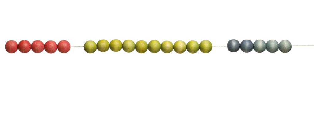 In unserer schnelllebigen Zeit sind geschichtliche Zeiträume, Abläufe und die Entwicklung von Geräten über Jahrtausende hinweg für Kinder und Jugendliche (immer öfter auch für Erwachsene) kaum mehr nachvollziehbar. In vielen Workshops im vorarlberg museum wird deshalb gerne eine Zeitkette (Abb. 1) verwendet, die mit jeweils 1 Holzkugel je 100 Jahre auch längere Zeiträume gut abbildet. Durch unterschiedliche Farben der Kugeln ist es auch möglich, die bekannteren Epochen der Kulturgeschichte darzustellen: Naturfarbe = Steinzeit, Altrosa = Bronzezeit, Violett = Eisenzeit, Rot = Römerzeit, Grün = Mittelalter, Blau = 16./17., Türkis = 19./20. Jh., Gelb = 21. Jh.