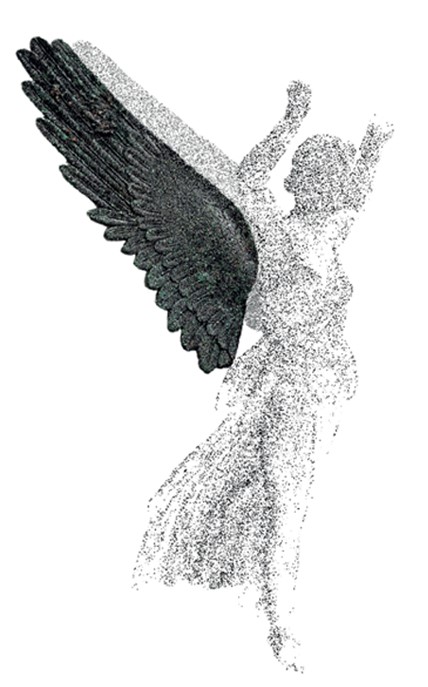 Die römische Siegesgöttin ist uns von verschiedenen Sujets bekannt. Lange vor der Kaiserzeit wurde die Göttin auch auf sog. Victoriatus-Münzen abgebildet: Auf der Rückseite versieht sie ein Feldzeichen als temporäres Denkmal für einen Sieg mit einem Lorbeerkranz. Seit Kaiser Claudius (41 – 54 n. Chr.) ist sie die Schutzgöttin der Herrscher. Kunsthistorisch Bewanderten ist die überlebensgroße Bronzestatute der Victoria von Brescia ein Begriff, die 1826 gefunden wurde und die Göttin zeigt, wie sie mit der rechten Hand einen verlorenen Schild beschriftet (Abb. 5). Die Flügel, die sekundär angebracht wurden, wirken entspannt und hängend – aber in gewisser Weise auch einem Fremdkörper gleich.