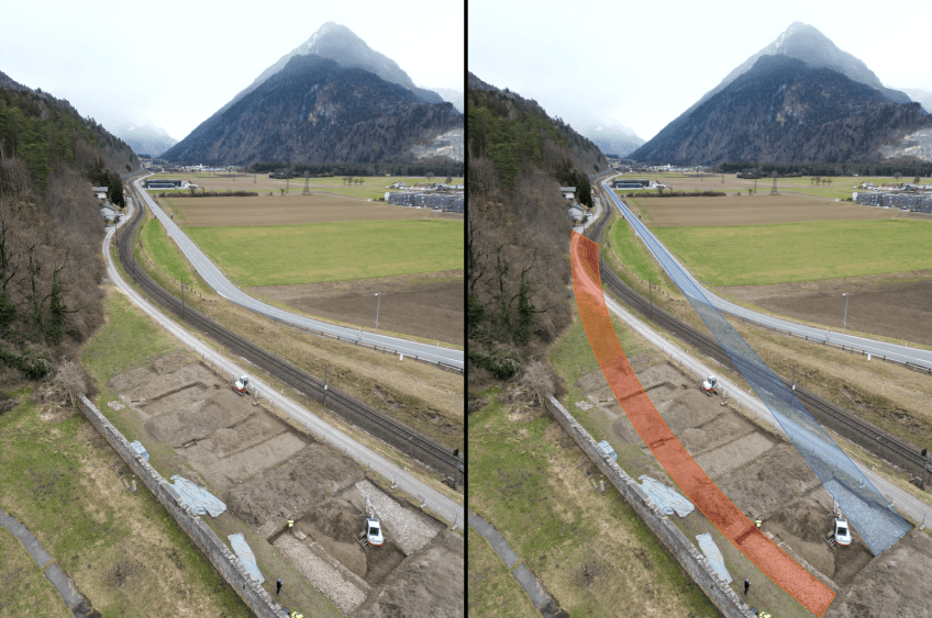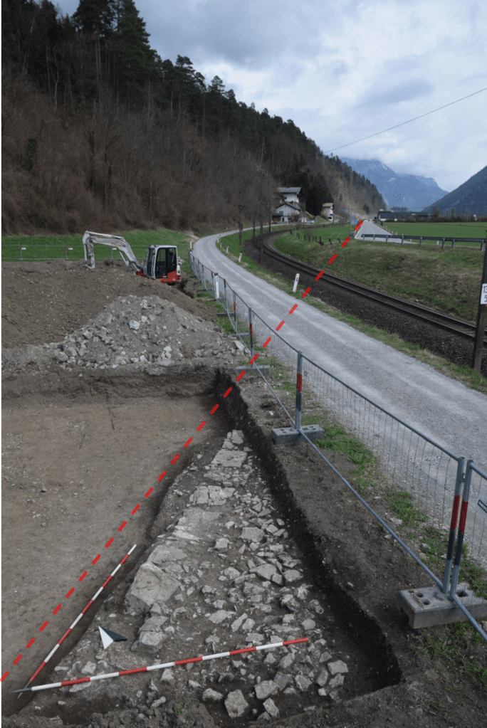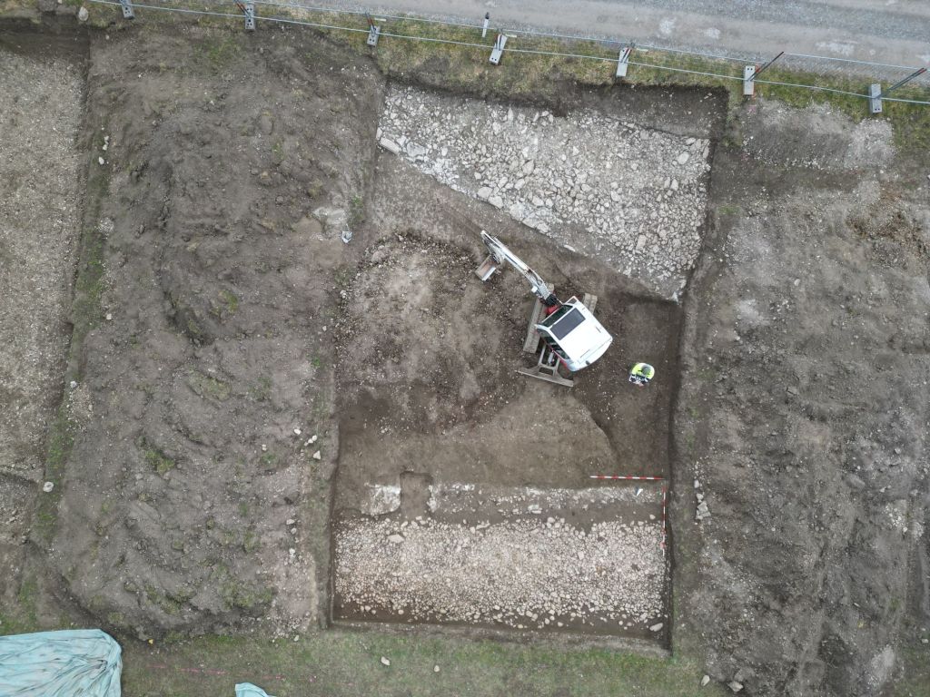Ein Teilabschnitt der historischen Straßenführung konnte im Frühjahr 2025 durch Archäologen auf der Flur des sogenannten „Klosterfrauenpaschg“ vor dem Kloster St. Peter ausgegraben werden (Abb.3).